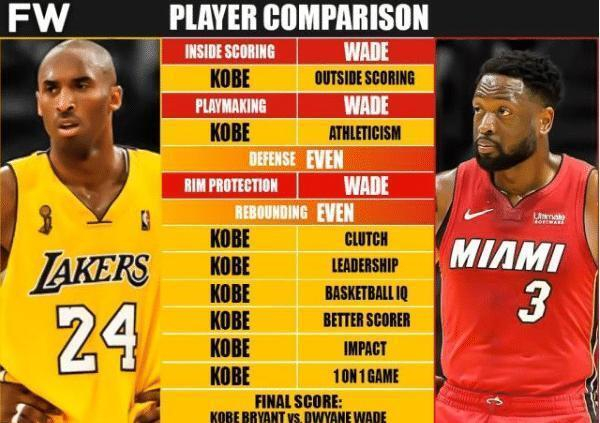 这次对比不仅体现了两位球员在各自领域的卓越表现,也让我们看到了他们在篮球历史中的重要地位。无论是科比还是韦德,他们都以其独特的方式为篮球运动做出了巨大的贡献,并激励着一代又一代的球迷和球员。