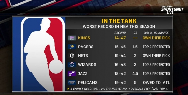 奇异果体育官网-摆烂队首轮签详情:国王&篮网自己持有 步行者前4顺位保护